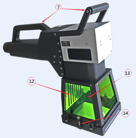 (7) Mango del escáner (para marcado portátil/portátil): cuando el operador usa esta máquina de forma portátil, hay dos mangos para sostener el escáner y continuar con el proceso de marcado.